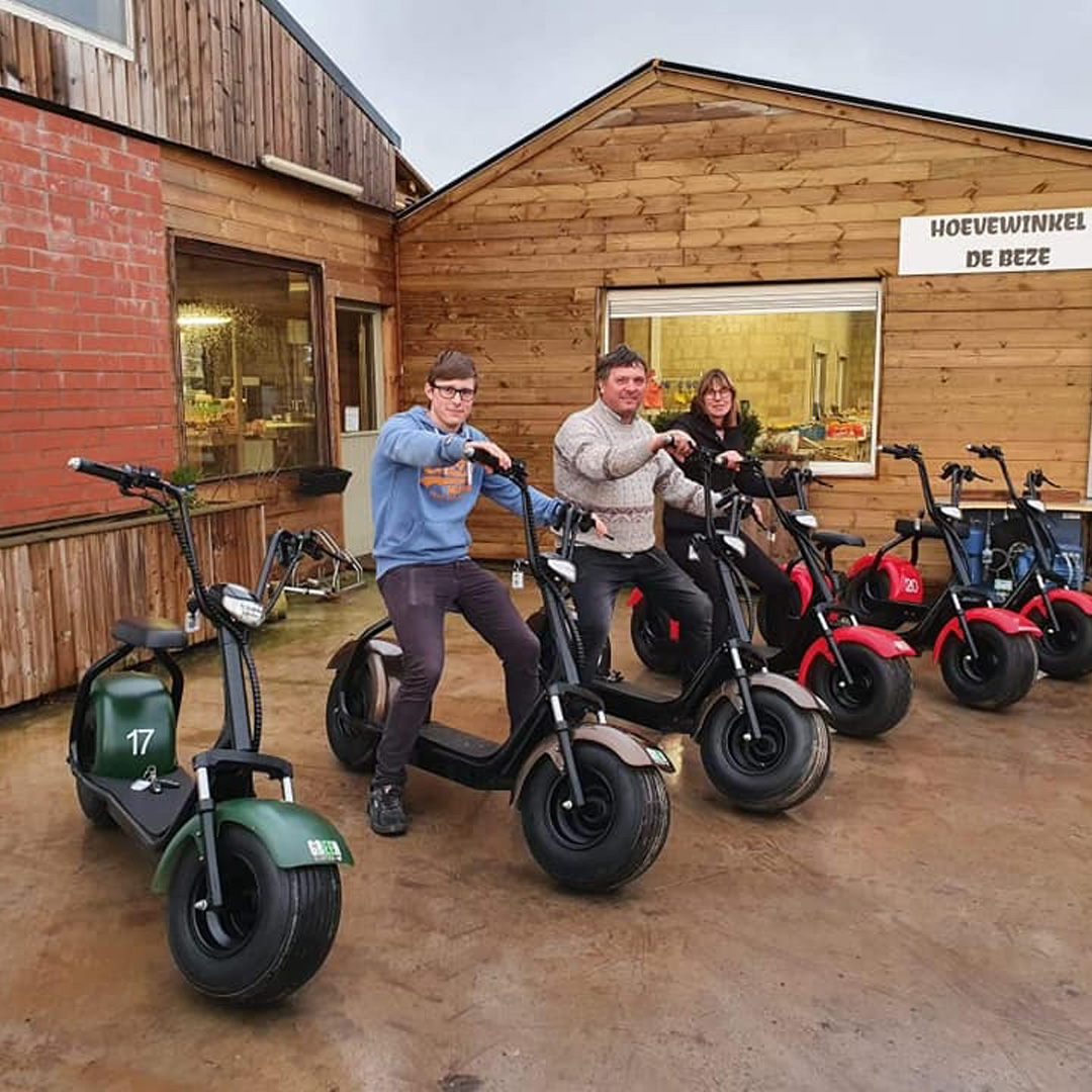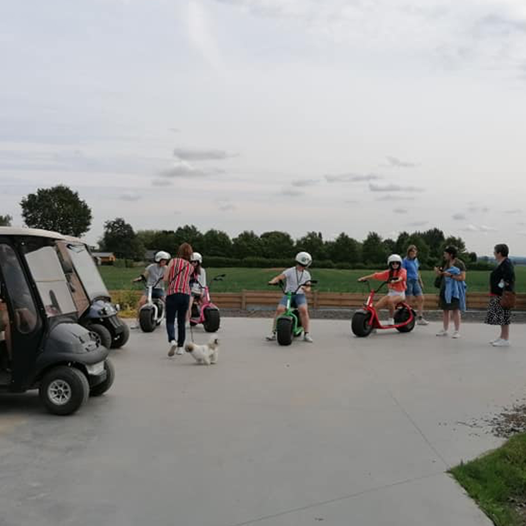 Découvrir le Heuvelland prend une toute nouvelle dimension à bord de nos golfettes électriques. Montez avec vos amis, votre famille ou vos collègues et profitez d’une balade détendue à travers le paysage vallonné. Confortables, silencieuses et accessibles à tous, elles permettent à chacun de participer, que vous souhaitiez rouler tranquillement ou opter pour une sortie plus dynamique. En chemin, vous traversez des villages charmants, admirez de superbes panoramas et profitez de nombreux moments pour vous arrêter, échanger et partager un bon moment.
