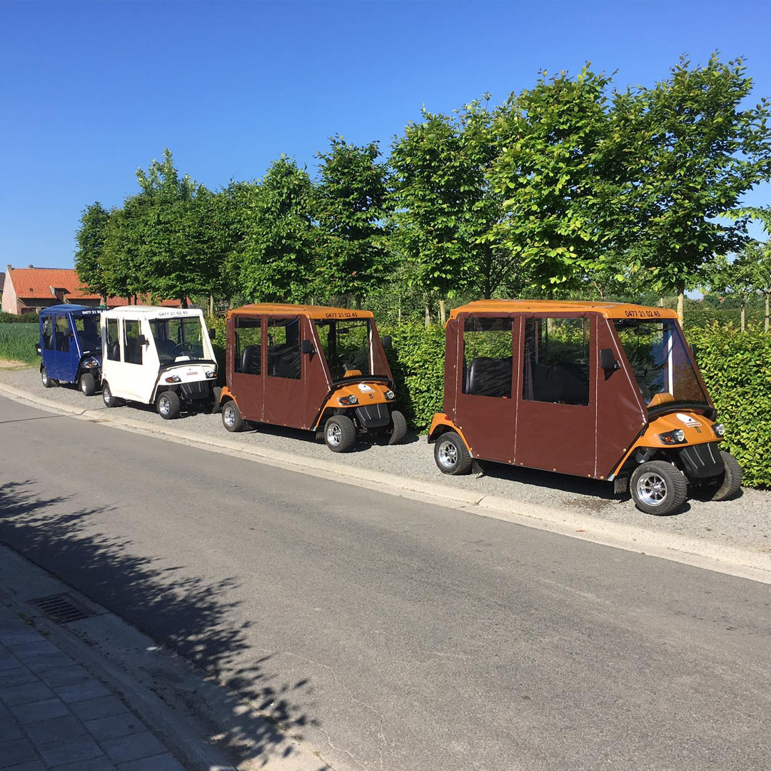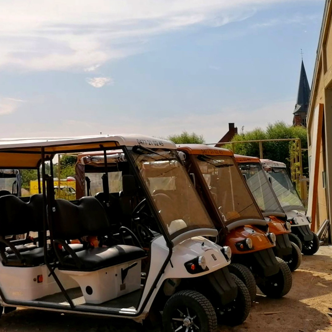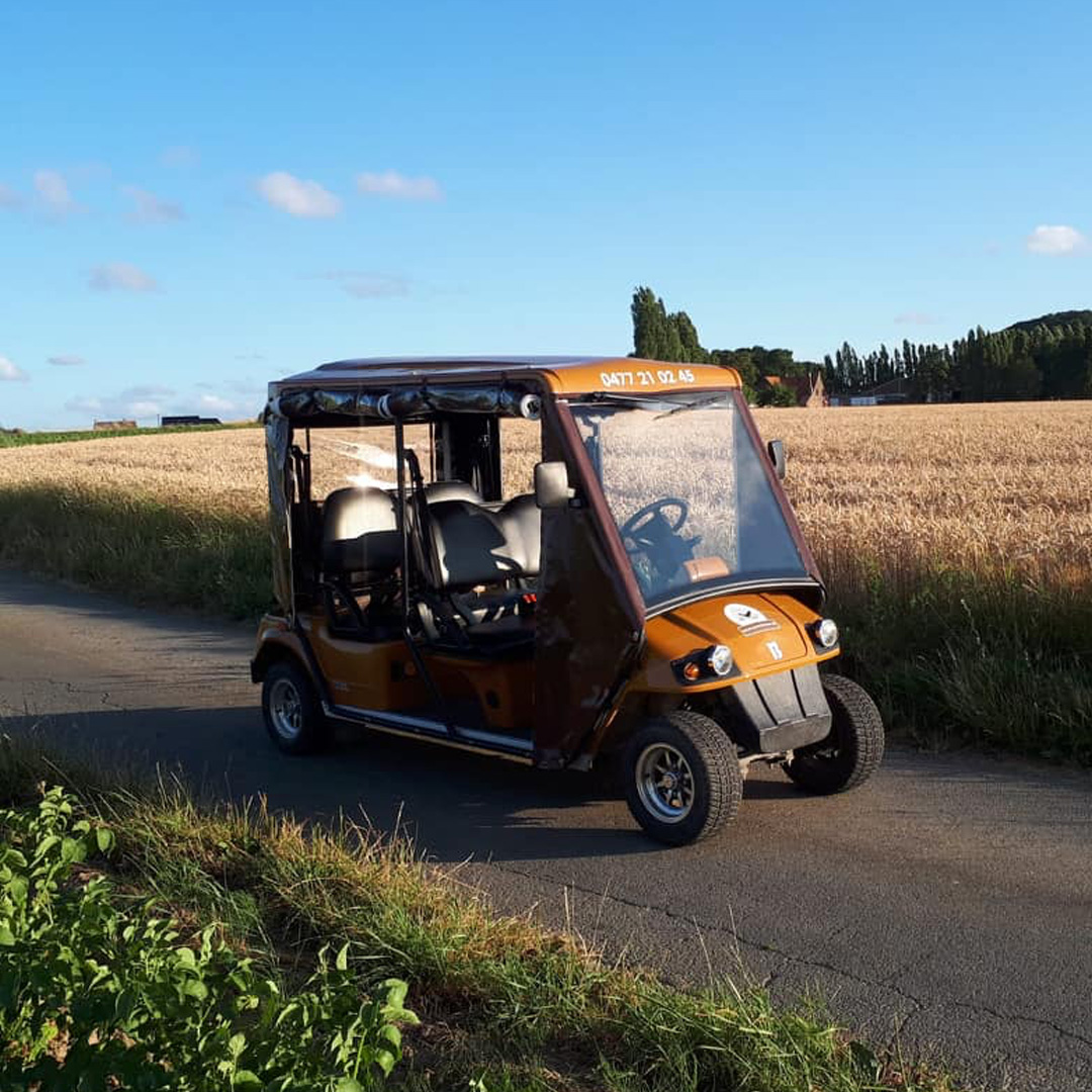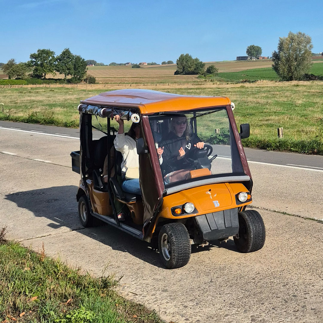 Découvrir le Heuvelland prend une toute nouvelle dimension à bord de nos golfettes électriques. Montez avec vos amis, votre famille ou vos collègues et profitez d’une balade détendue à travers le paysage vallonné. Confortables, silencieuses et accessibles à tous, elles permettent à chacun de participer, que vous souhaitiez rouler tranquillement ou opter pour une sortie plus dynamique. En chemin, vous traversez des villages charmants, admirez de superbes panoramas et profitez de nombreux moments pour vous arrêter, échanger et partager un bon moment.