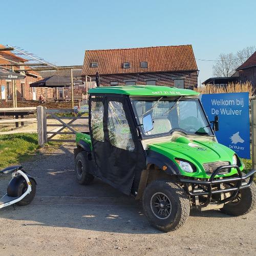 Wie bij ons golfkarren huurt, kan ook kennismaken met Hoeveboerderij De Wulver in Wulvergem. Ontdek het boerenleven van dichtbij, ontmoet de dieren en geniet van snacks en traiteurformules met lokale producten uit de korte keten.